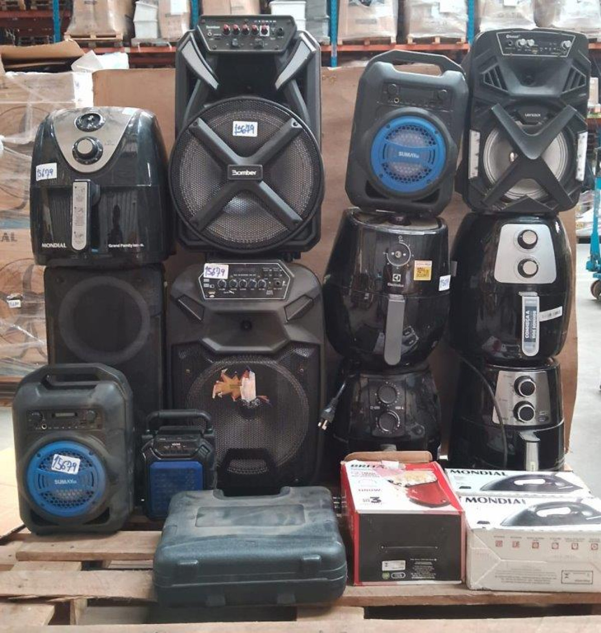 Lote 15679 - 16 ITENS SENDO: 07 CAIXAS DE SOM + 02 FERROS + 05 FRITADEIRAS + 01 PARAFUSADEIRA + 01 PIPOQUEIRA
