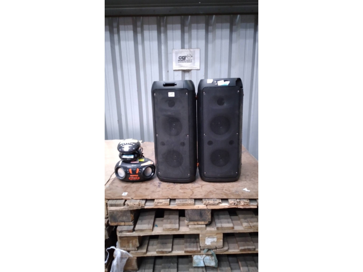 Lote 16729 - 05 ITENS SENDO: 02 CAIXAS ACUSTICAS LUMI BOX + 03 RADIOS