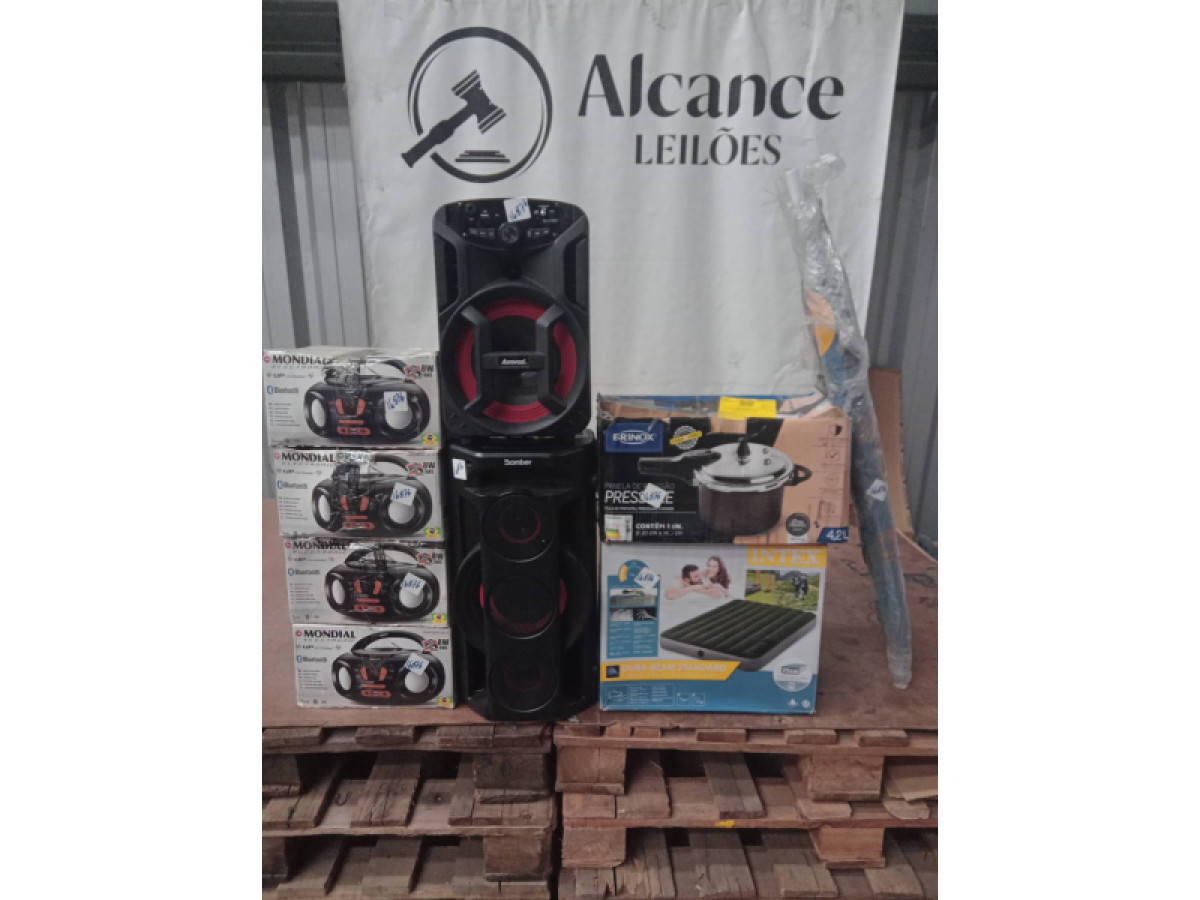 Lote 16876 - 09 ITENS SENDO: 04 RADIOS + 02 CAIXAS DE SOM + 01 COLCHÃO + 01 PANELA DE PRESSÃO + 01 GUARDA-SOL