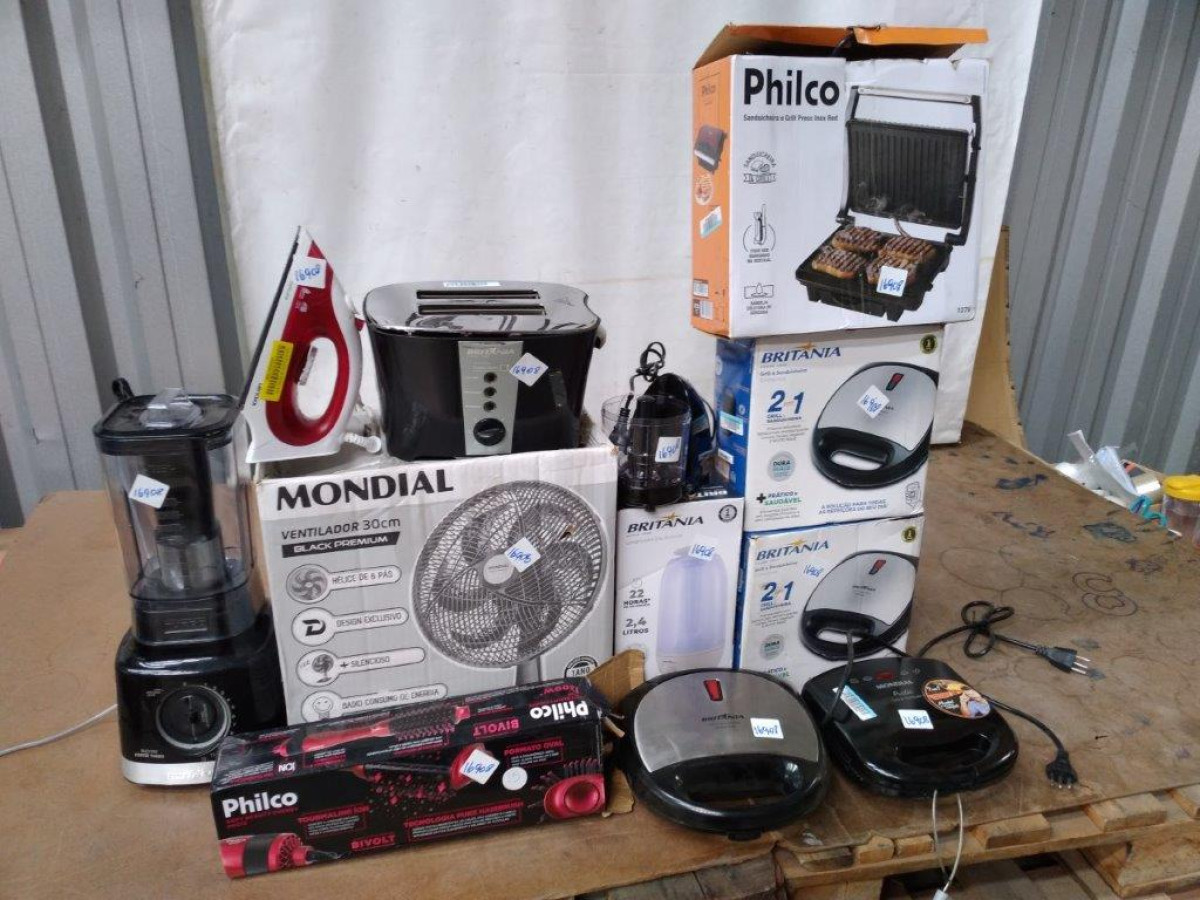 Lote 16908 - 12 ITENS SENDO: 01 ESCOVA + 01 FERRO + 01 GRILL + 01 LIQUIDIFICADOR + 01 MINI PROCESSADOR + 04 GRILLS + 01 TORRADEIRA + 01 UMIDIFICADOR + 01 VENTILADOR