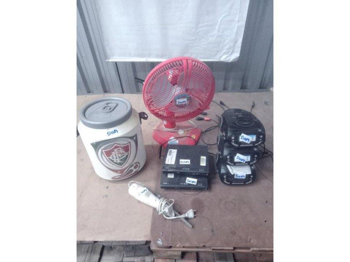 Lote 51084 - 08 ITENS SENDO: 01 COOLER + 02 DVD PLAYERS + 01 FACA ELÉTRICA + 03 RÁDIOS RELÓGIO + 01 VENTILADOR DE MESA