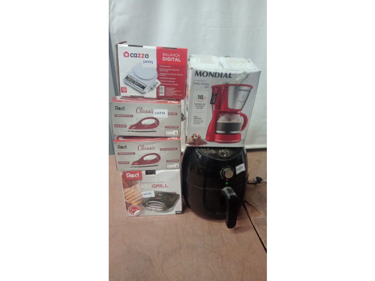 Lote 52773 - 06 ITENS SENDO: 01 GRILL + 01 CAFETEIRA + 01 BALANÇA + 02 FERROS + 01 FRITADEIRA