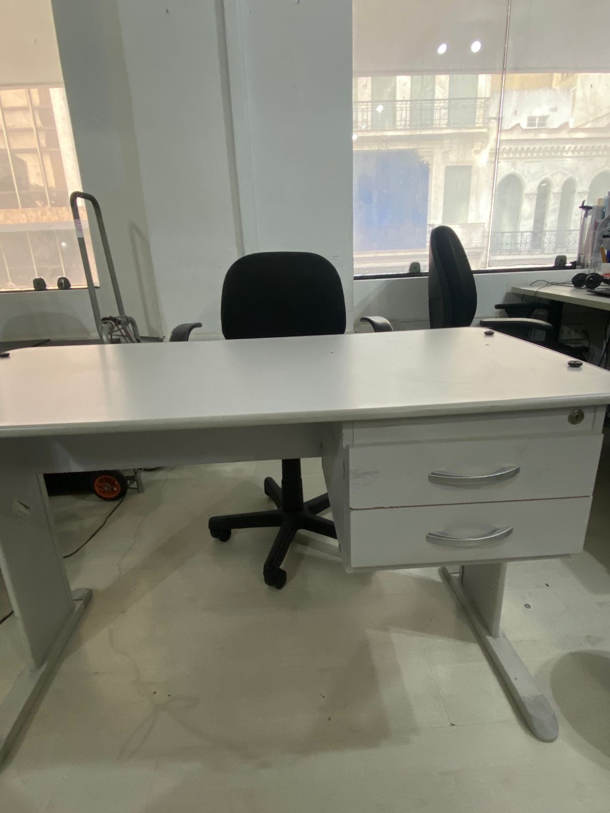 Lote 42 - Mesa com 02 Gavetas + Cadeira com Braços e Rodinhas