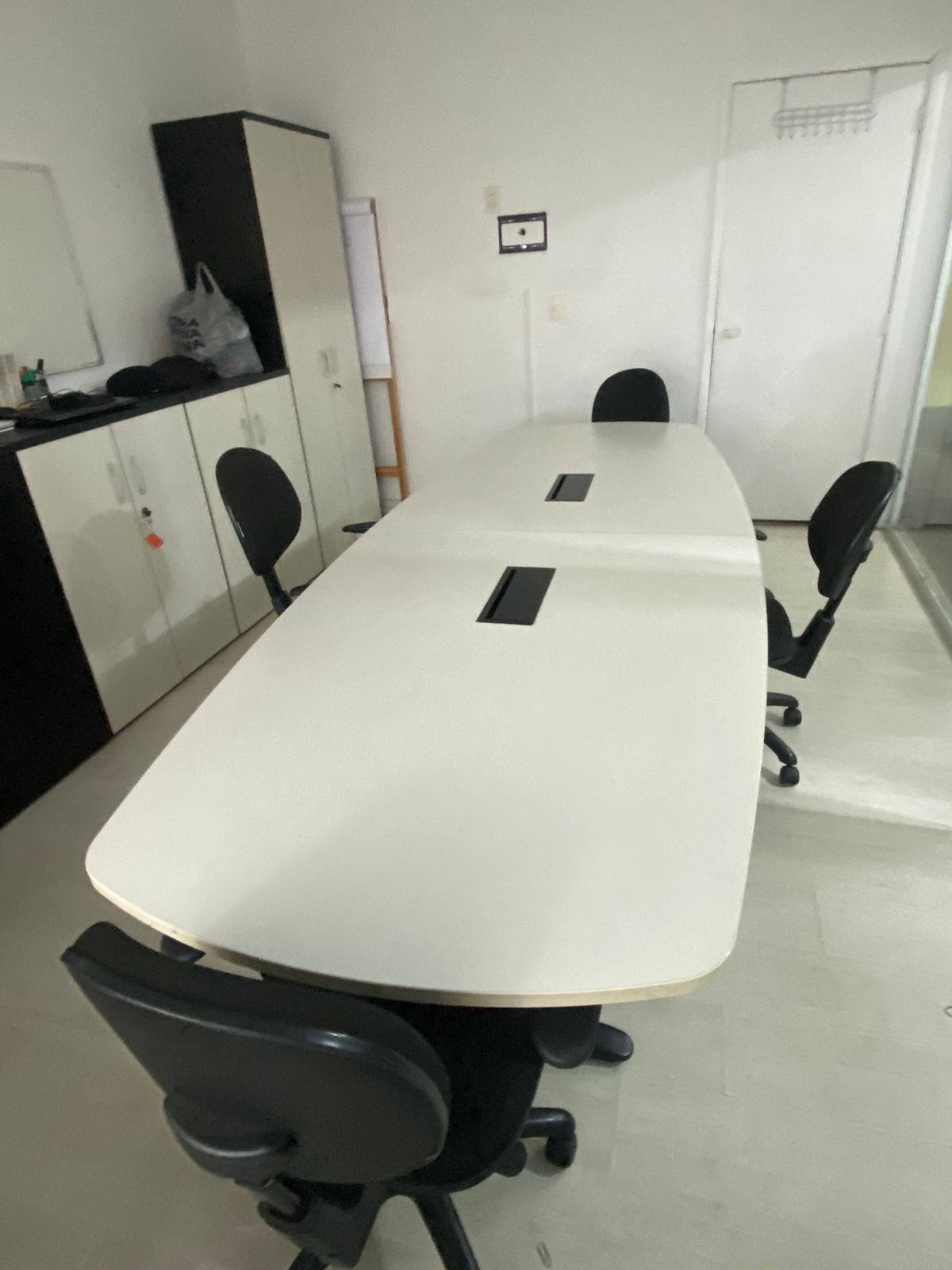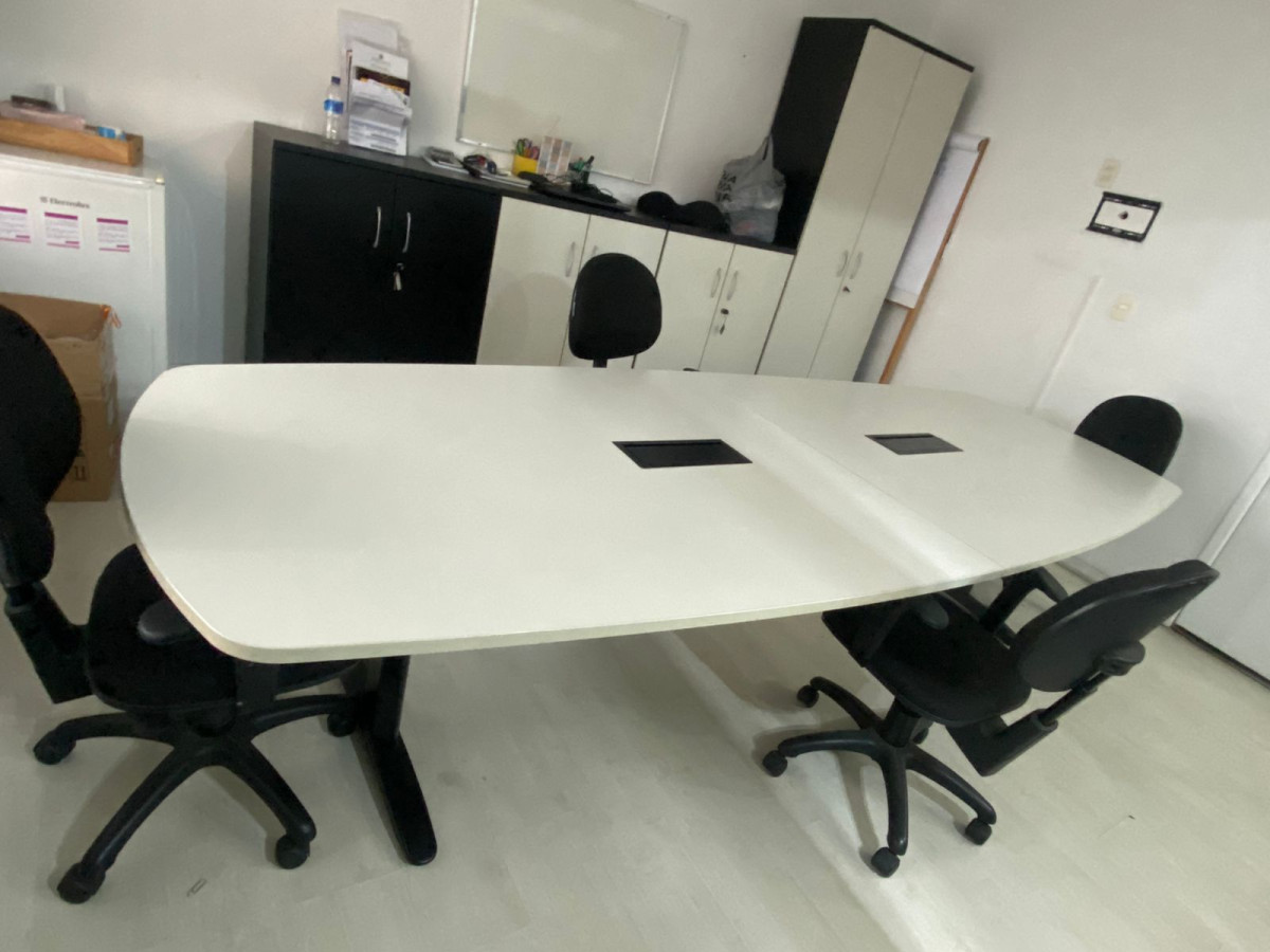 Lote 46 - Mesa Grande 08 Lugares + 04 Cadeiras com Braços e Rodinhas