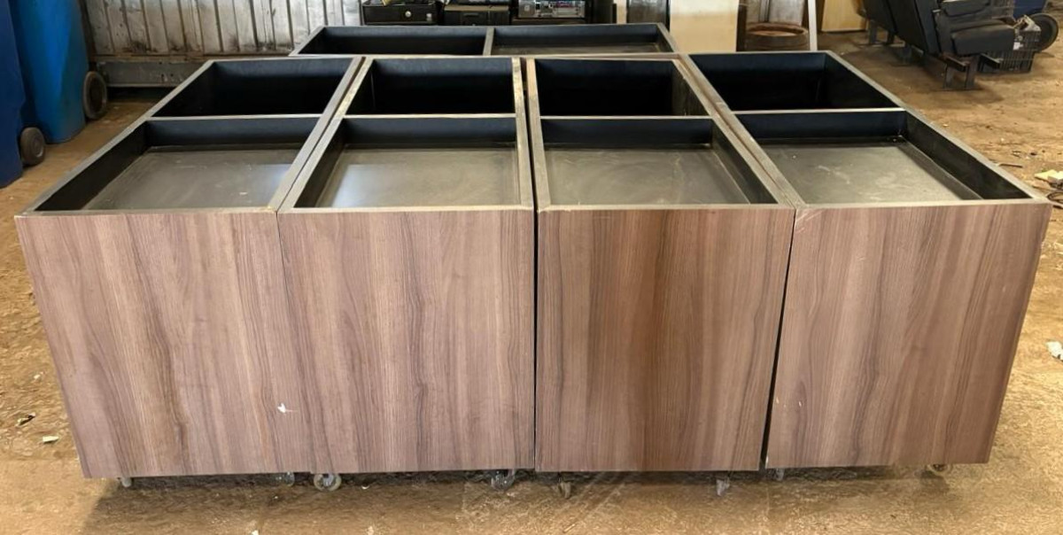 Lote 1 - 05 ESTAÇÕES/BALCÕES DE ATENDIMENTO EM MADEIRA PROVENIENTES DE CINEMA, COM DIMENSÕES APROXIMADAS DE 157X60X85 CM