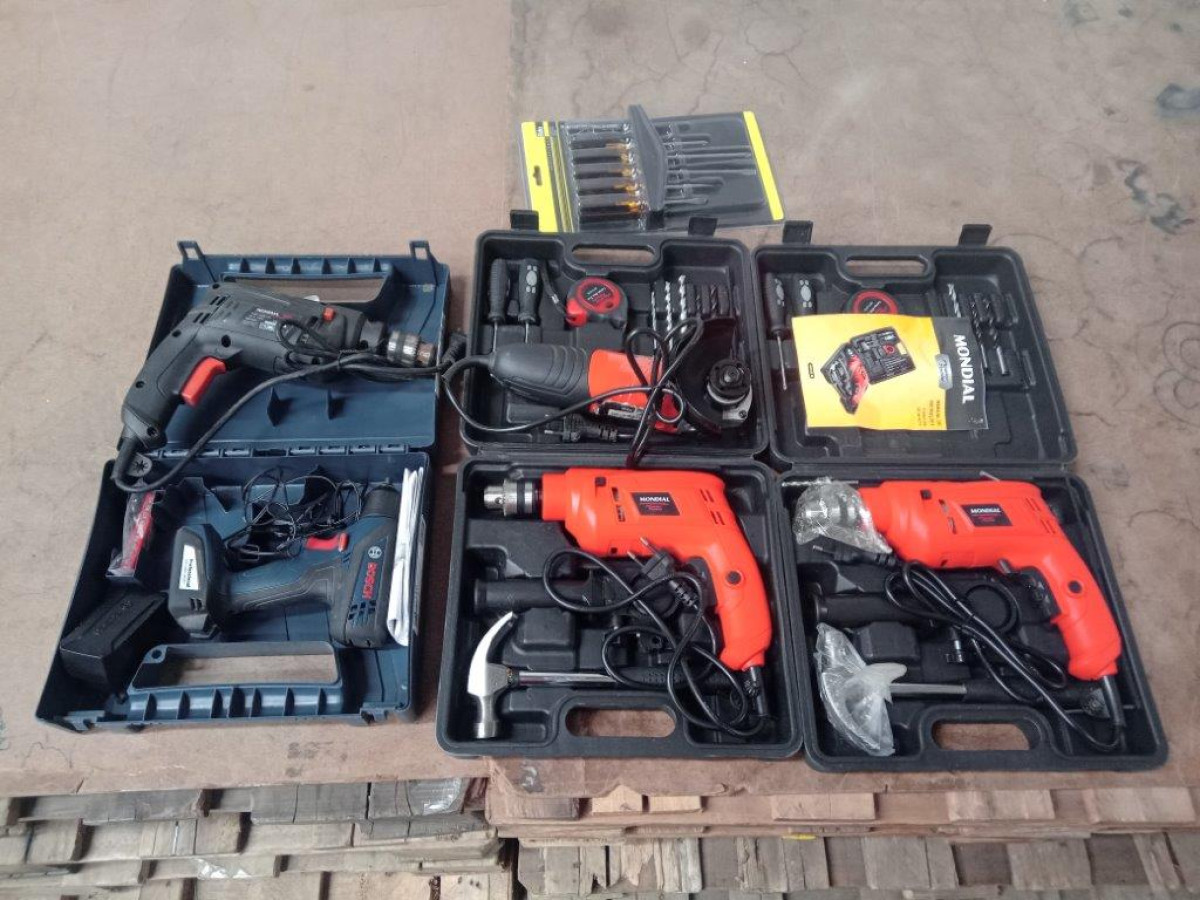 Lote 53879 - 06 ITENS SENDO: 01 ESMERILHADEIRA + 03 FURADEIRAS + 01 KIT CHAVES + 01 PARAFUSADEIRA