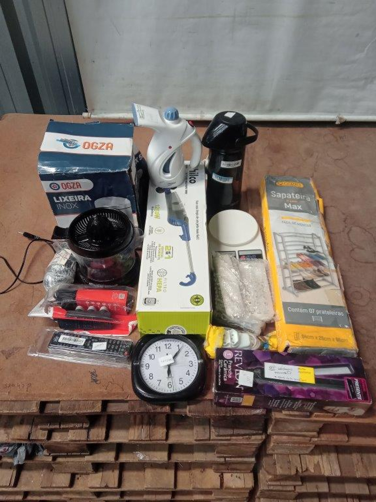 Lote 53886 - 14 ITENS SENDO: 01 ASPIRADOR + 01 BALNÇA + 01 CONTROLE REMOTO + 01 ESPREMEDOR + 03 EXTENSÕES + 01 GARRAFA TERMICA + 01 LIXEIRA + 01 PASSADEIRA + 01 PRANCHA + 01 RELOGIO + 01 SAPATEIRA + 01 TELEFONE
