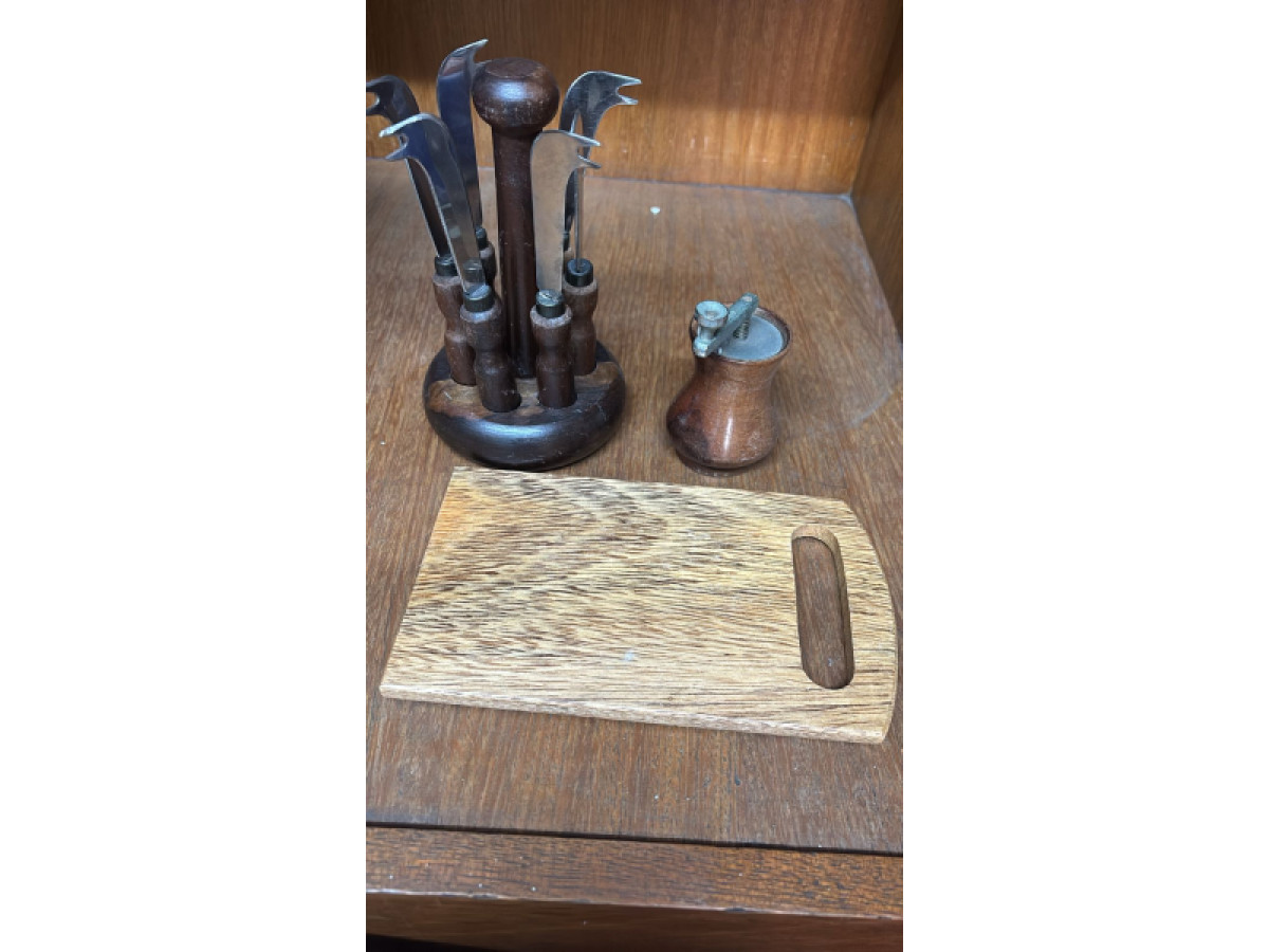Lote 37 - CONJUNTO DE UTENSÍLIOS PARA APERITIVOS + TÁBUA DE CORTE